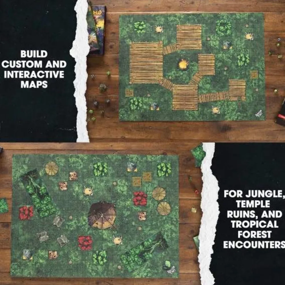 Includes: temple ruins, wooden bridges, tropical monsters, and more. Perfect for Tomb of Annihilation (DnD) and compatible with the Jungle City and Jungle Floor BattleMaps.