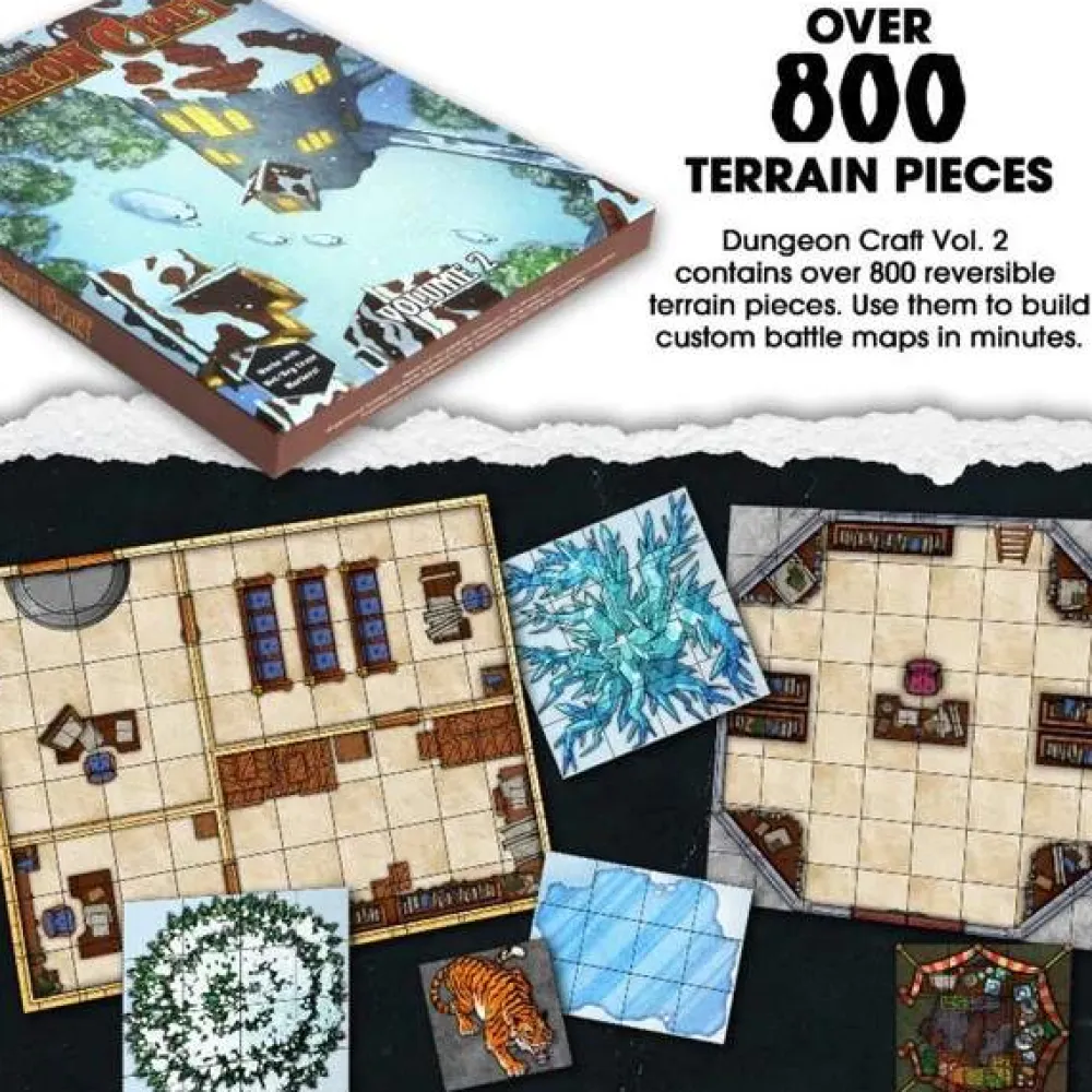 Introducing Dungeon Craft, the ultimate toolkit for Dungeon Masters (DMs) and players seeking immersive RPG terrain! Each book contains custom TTRPG terrain map titles, making it perfect for fantasy tabletop terrain. Laminated for wet-erase and dry-erase compatibility, these customizable RPG pieces are compatible with Dungeons and Dragons, Pathfinder, Warhammer 40k, Shadowrun, and other TTRPGs.