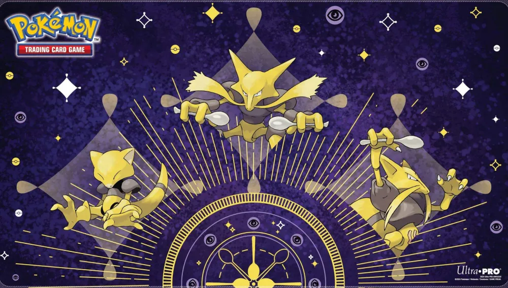 Playmats for Pokemon feature vibrant, full-color artwork. Made with a soft fabric top to reduce damage to cards during play and a non-slip rubber backing to keep the playmat from shifting during use, playmats enhance the gameplay experience. With dimensions of approximately 24 in. x 13.5 in., a playmat also makes an excellent oversize mousepad for home or office.