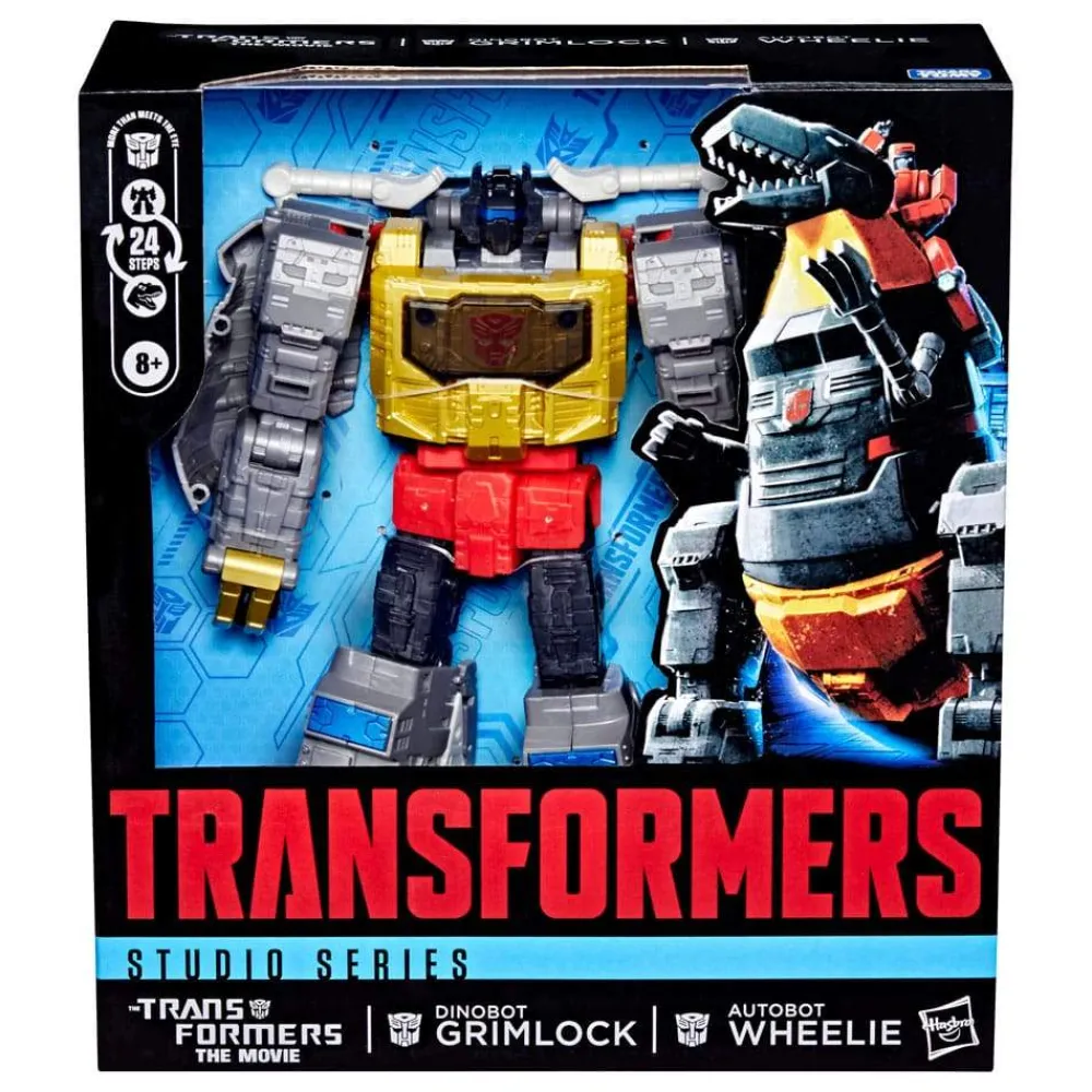 The 21.5 cm figure converts from robot action figure to dino mode in 24 steps. With film-inspired details, intricate poseability, and a non-converting Autobot Wheelie mini action figure that can sit on Grimlock toy in both modes, this Dinobot Grimlock action figure makes an amazing addition to any collection. Keep an eye out for more Transformers collectible toys (sold separately, subject to availability) featuring favourite characters like Optimus Prime, Bumblebee, Megatron and more to create a line-up that is – More Than Meets the Eye.