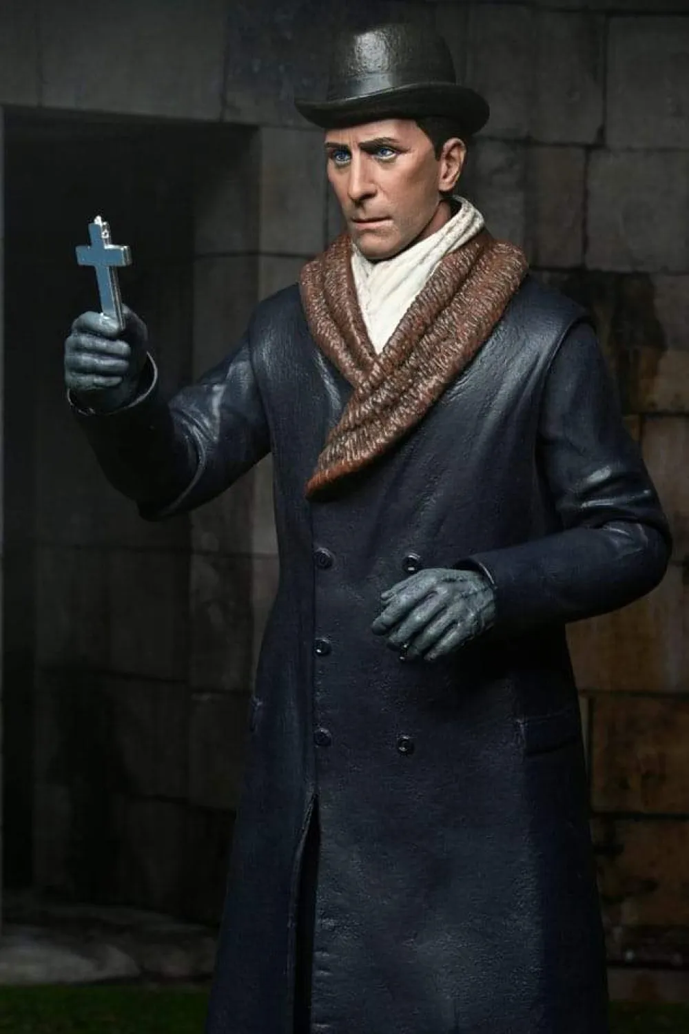 Peter Cushing plays the iconic character Van Helsing, who is sent to destroy Dracula, as played by Christopher Lee. This Ultimate Van Helsing stands in 7-inch scale and features an interchangeable waist for an alternate look in either his vest or long coat.