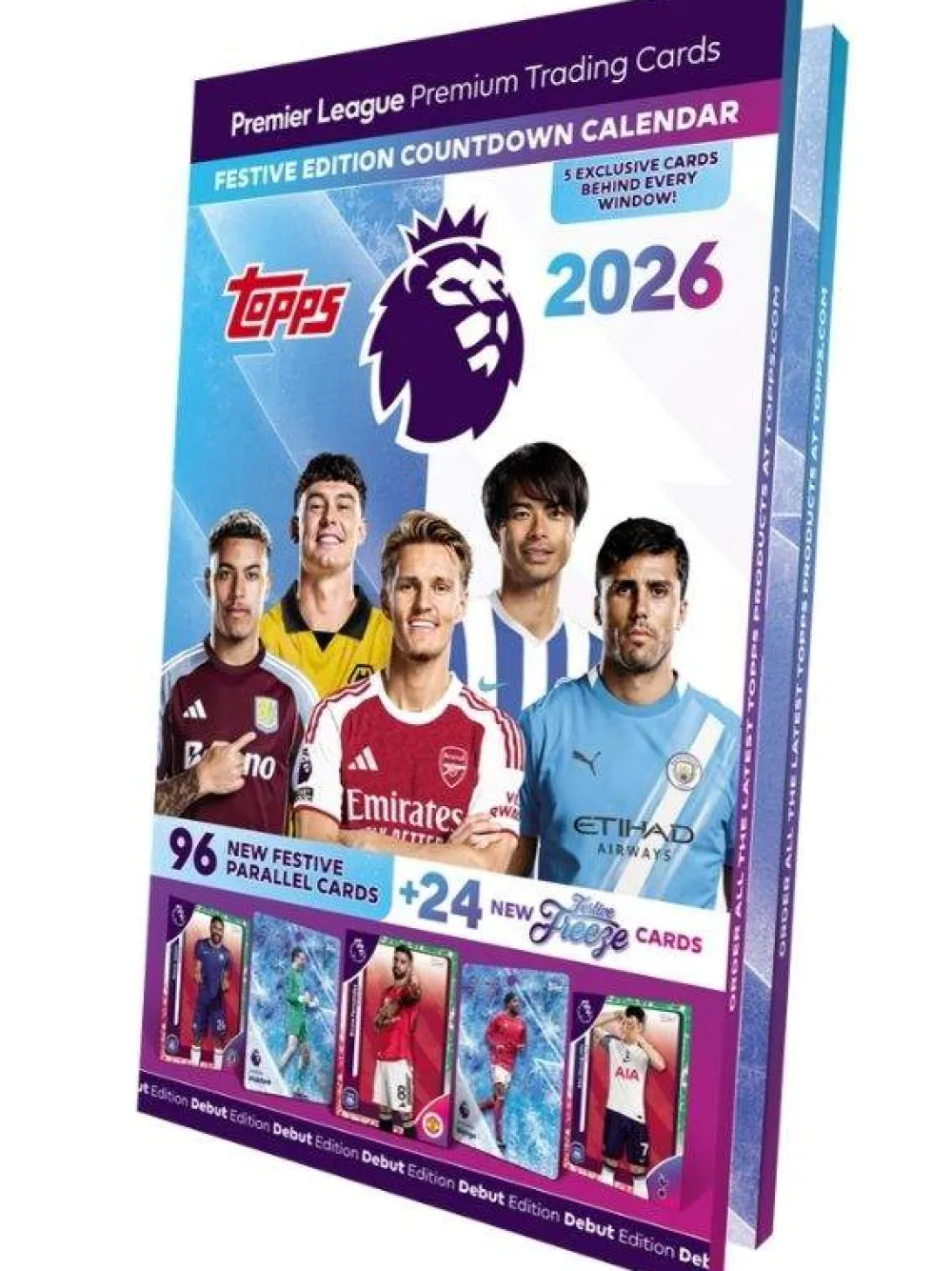 The Topps Premier League 2026 Trading Cards Festive Edition Countdown Calendar is a special collection of football trading cards featuring top teams like Liverpool, Manchester City, Arsenal, Chelsea, and Manchester United. With a total of 120 cards included in 24 packs, fans can enjoy the excitement of opening packs to collect their favourite players and teams from the Premier League. Manufactured by Topps in Italy, these standard-sized cards are made of high-quality card stock and are in English language. Perfect for football enthusiasts looking to add to their SPORTS memorabilia collection, this limited edition set is a must-have for any fan of the Premier League.