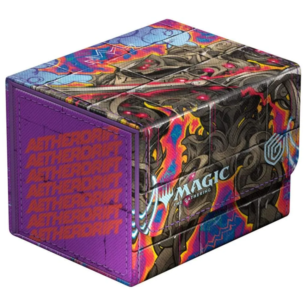 The Sidewinder 100+, made of durable Xenoskin material, holds up to 100 (double-sleeved) or 120 (single-sleeved) cards and is the perfect deck box for Commander/EDH decks. Printed in full color with officially licensed artworks from Magic: The Gathering’s Aetherdrift, Ultimate Guard’s Sidewinder deck boxes with their strong magnetic closure and quality microfiber inner lining are a safe and reliable storage place for MTG decks and individual trading cards.