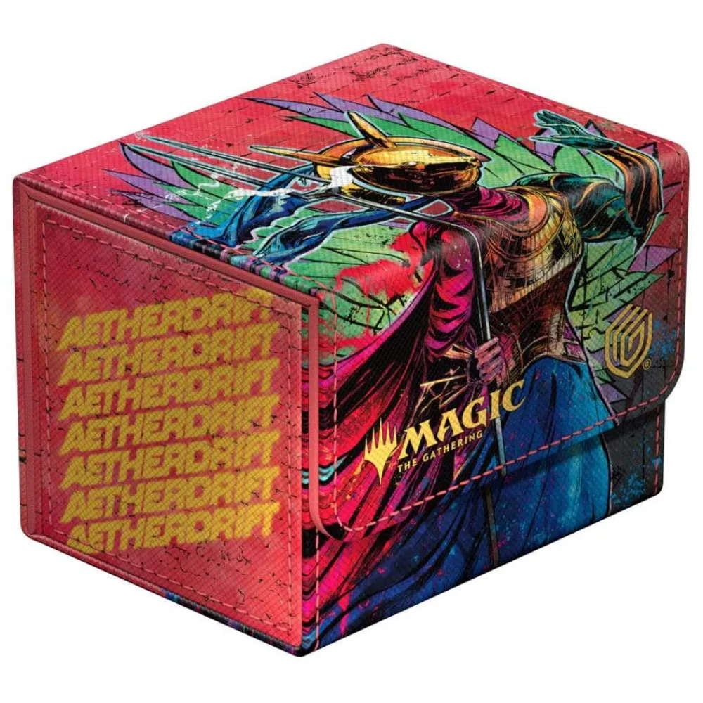 The Sidewinder 100+, made of durable Xenoskin material, holds up to 100 (double-sleeved) or 120 (single-sleeved) cards and is the perfect deck box for Commander/EDH decks. Printed in full color with officially licensed artworks from Magic: The Gathering’s Aetherdrift, Ultimate Guard’s Sidewinder deck boxes with their strong magnetic closure and quality microfiber inner lining are a safe and reliable storage place for MTG decks and individual trading cards.
