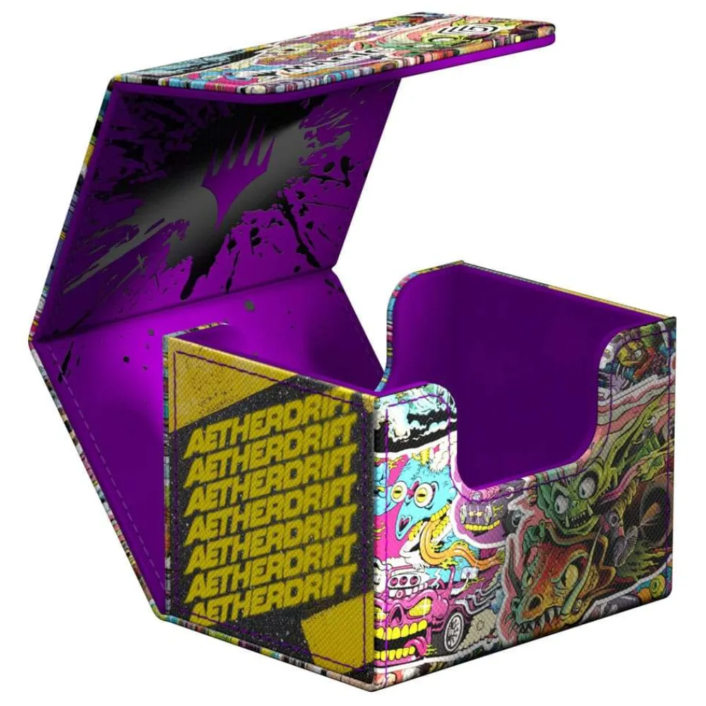 The Sidewinder 100+, made of durable Xenoskin material, holds up to 100 (double-sleeved) or 120 (single-sleeved) cards and is the perfect deck box for Commander/EDH decks. Printed in full color with officially licensed artworks from Magic: The Gathering’s Aetherdrift, Ultimate Guard’s Sidewinder deck boxes with their strong magnetic closure and quality microfiber inner lining are a safe and reliable storage place for MTG decks and individual trading cards.