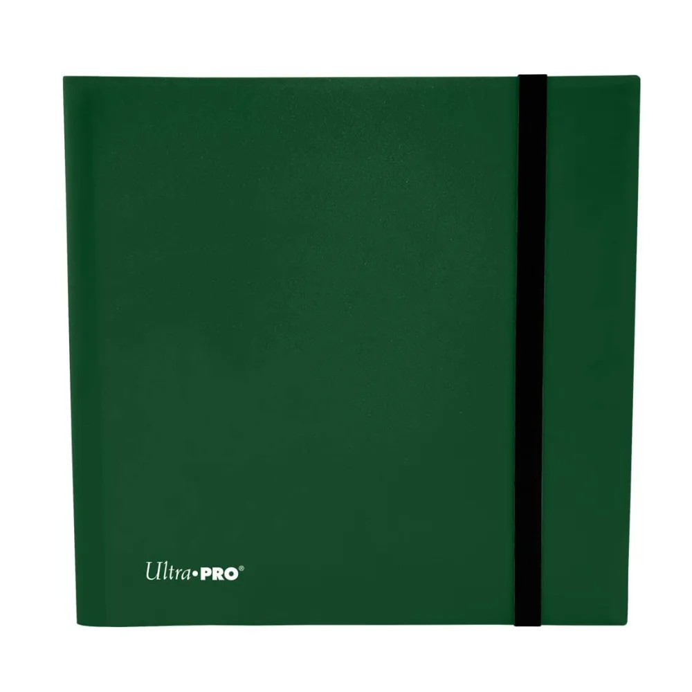 12-pocket Forest Green PRO-Binder with embossed middle black web material gives cards a classic framed look. Side loading pocket design to prevent cards from easily falling out. Elastic strap holds the binder shut when not in use. All materials made from archival-safe, acid-free non-PVC material. Holds 480 cards in Ultra Pro Deck Protector sleeves.