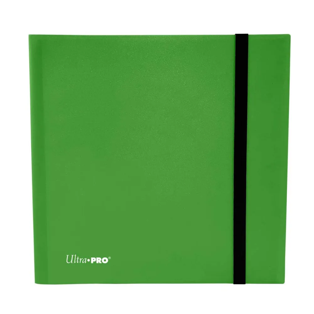 12-pocket Lime Green PRO-Binder with embossed middle black web material gives cards a classic framed look. Side loading pocket design to prevent cards from easily falling out. Elastic strap holds the binder shut when not in use. All materials made from archival-safe, acid-free non-PVC material. Holds 480 cards in Ultra Pro Deck Protector sleeves.