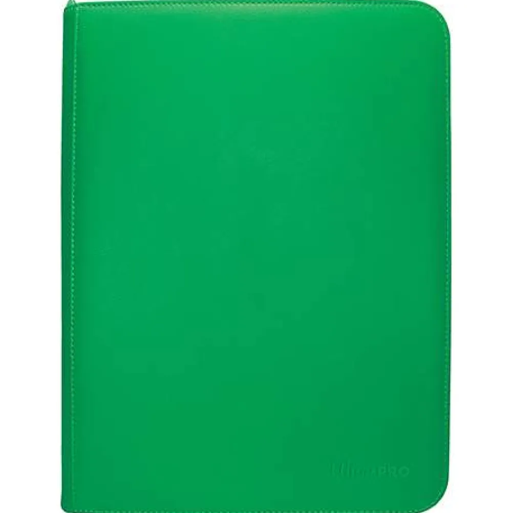 - 9-Pocket Zippered PRO-Binder with green padded leatherette cover
