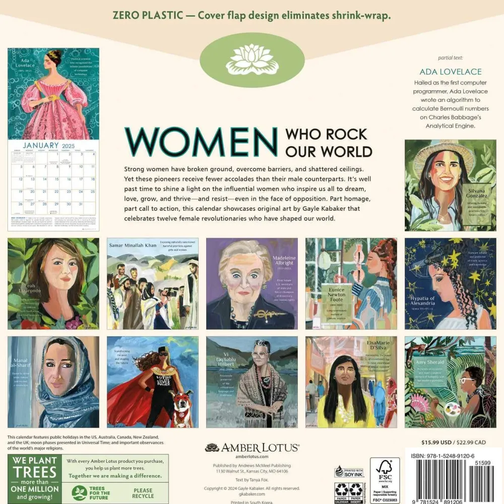 Part call to action and part illuminating tributes, the Women Who Rock Our World 2025 Wall Calendar showcases extraordinary women––such as Madeleine Albright, Ada Lovelace, Samar Minallah Khan, Amy Sherald, and Leah Lizarando––as portrayed by contemporary artist Gayle Kabaker. Learn more about these women and others who trailblazed their way to inspire us all to dream, love, grow, thrive––and persist––to overcome challenges and make a difference in the world.