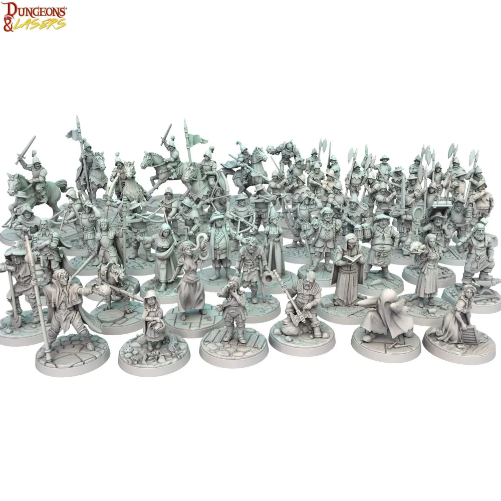 - The box contains 62 townsfolk miniatures with scenic bases