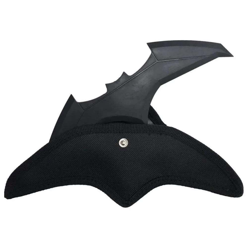 Made out of soft rubber, this 10 inch wide LARP (Live Action Role-Play) Batarang is perfect cosplaying and role-playing and comes with a nylon carrying case featuring a loop for attaching to a belt, strap and more.