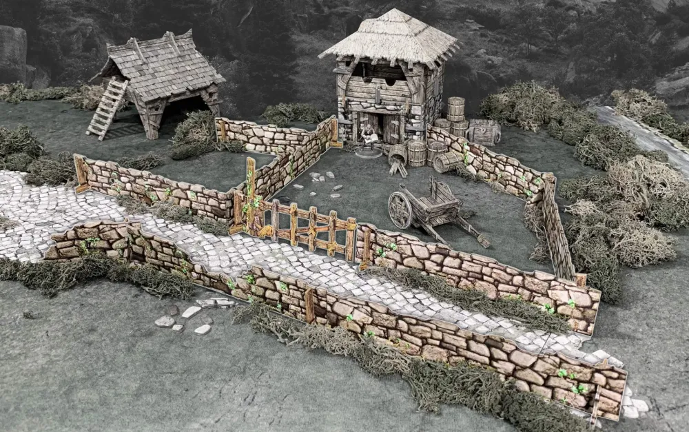 The terrain is supplied flat-packed on high-quality, high-density card, printed in full colour on both sides, so no painting required! The terrain requires assembly, and some smaller parts will require glue.