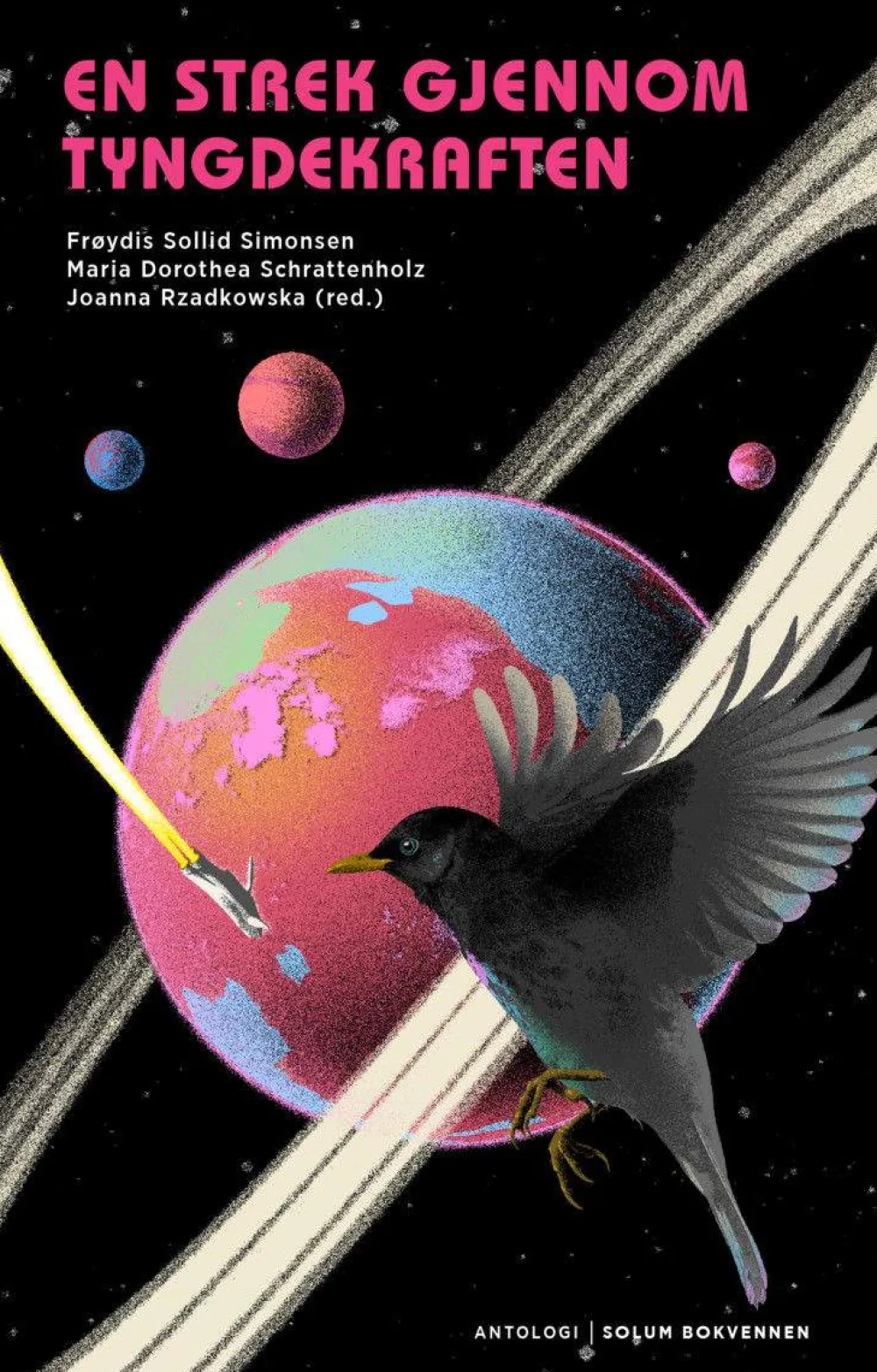 En strek gjennom tyngdekraften er en samling tekster som på hvert sitt unike vis beskriver nye, fantasifulle, utvidede og utsatte måter å eksistere på – i tid, rom og form, gjennom alt fra klonede, yngre versjoner av en selv, barneandroider eller halvdøde hjernenettverk underlagt et moderne slaveri. Som i mye annen science fiction, kan man også her skimte dagsaktuelle tema som flyktningkrise og miljøaktivisme. En strek gjennom tyngdekraften er en leken, fantasifull, fantastisk og stemningsfull samling tekster, og alle er skrevet spesielt for denne utgivelsen.