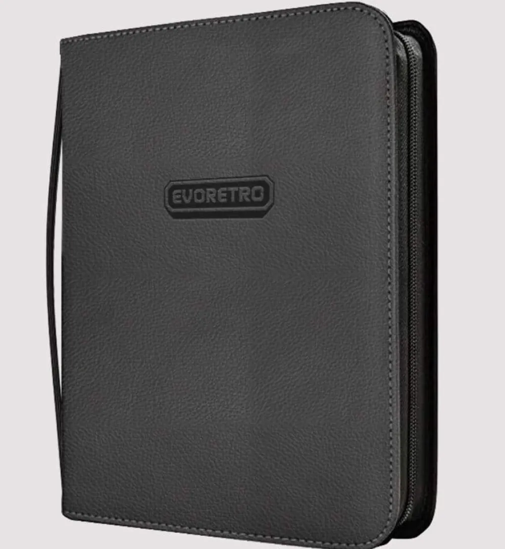EVORETRO’s Shield+ Binder safeguards your collection. Holds 216 cards, has 4 accessory pockets, tracker compartment, tailored for Toploader cards. Water-resistant with zipper, strap, and name tag for easy identification during travel or trade.