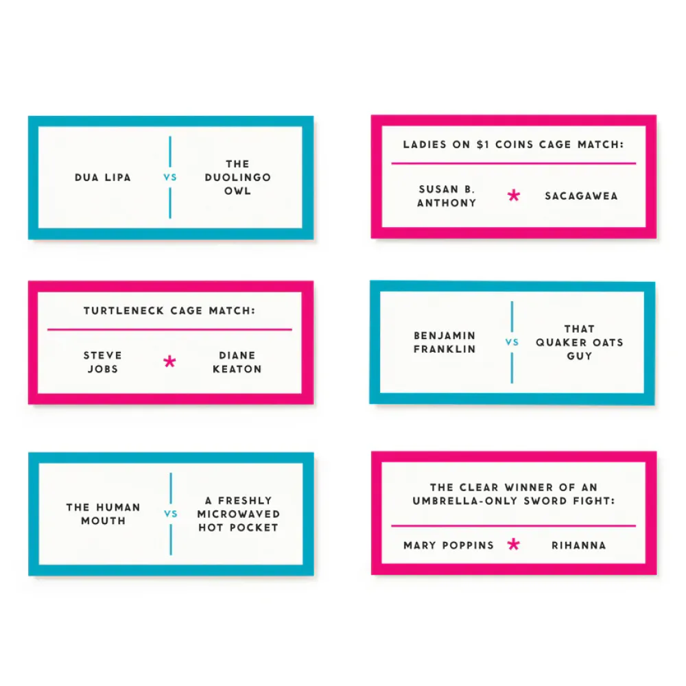 PERFECT PARTY GAME – Bring Debatable Battle to your next party and watch it be a guaranteed hit! You really think your friends believe Stephen King would win in a fight over the burger king mascot? Play the game and find out! It’s a game that will give you a night of hilarious debatable topics and unforgettable memories. Get ready to have everyone at the party in stitches as they try to debate who would win in these super weird fights!