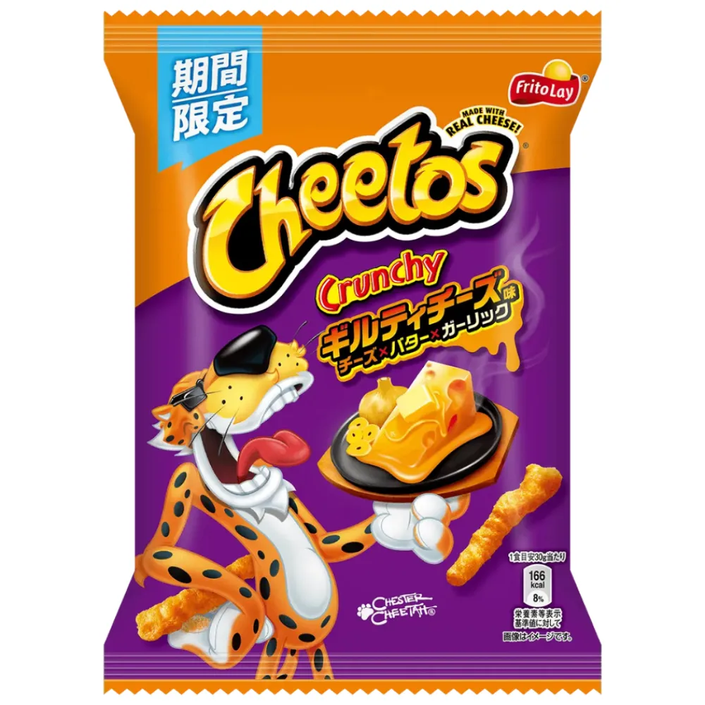Begrenset utgave av Japansk Cheetos med smak av ost, smør, og hvitløk.