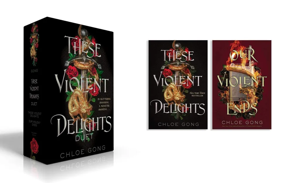 A hardcover boxed set of Chloe Gong’s New York Times bestselling These Violent Delights and its sequel, Our Violent Ends–the lush fantasy duology reimagining Romeo and Juliet in 1920s Shanghai.