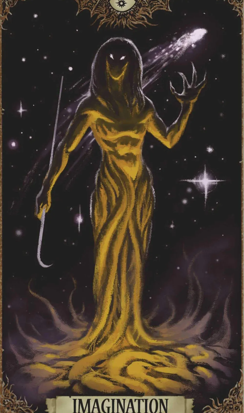ORIGINAL ART: Featuring 78 cards and a 128-page booklet with custom Necronomicon-inspired illustrations and never-before-seen artwork featuring Cthulhu, Yog-Sothoth, and the other dark denizens of Lovecraft’s fictional grimoire