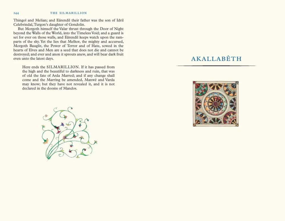 Tolkien could not publish The Silmarillion in his lifetime, as it grew with him, so he would leave it to his son, Christopher Tolkien, to edit the work from many manuscripts and bring his father’s great vision to publishable form, so completing the literary achievement of a lifetime. This special edition presents anew this seminal first step towards mapping out the posthumous publishing of Middle-earth, and the beginning of an illustrious forty years and more than twenty books celebrating his father’s legacy.