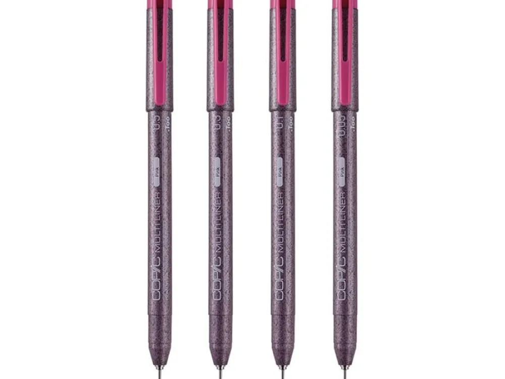 The Copic Multiliner Set Pink is a set of 4 high-quality pens with pigment-based ink. These disposable pens are resistant to water, light and alcohol-based markers, which makes them ideal for sketches and outlines that can later be colored with Copic markers.