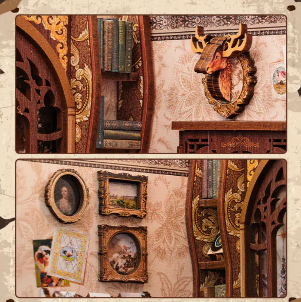 • Nostalgic Bookstore: Miniature bookstore with cozy charm, classic shelves and warm colors that awakens memories