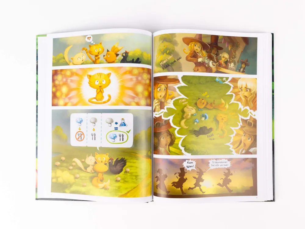 Bli med den unge heksa Pepar og katten hennar Gulrot ut på eventyr i denne sjarmerande tegneserien. Gjennom korte forteljingar får du følgje Pepar og Gulrot i ei magisk verd der dei møter eliksirkonkurransar, snobbete rivalar, mislykka bursdagsfestar og ein kvardag fylt med magiske vesen. David Revoy har skapt eit lunt og varmt univers som minner om Studio Ghibli sine verk, og no kan du nyte denne serien på nynorsk.Denne tegneserien, som opphavleg starta som ein webcomic, har blitt finansiert av lesarar frå heile verda. No er den endeleg tilgjengeleg i fysisk utgåve på norsk nynorsk. Med ein kombinasjon av humor og fantasy, vil Pepar og Gulrot ta deg med på uforgløymelege eventyr. Serien er perfekt for deg som elskar magiske forteljingar og ønsker å lese på nynorsk.Pepar og Gulrot er ikkje berre ei historie om magi, men også om vennskap og utfordringar i ein fantasiverd. Den varme og innbydande teiknestilen til Revoy gjer at du lett kan leve deg inn i Pepar og Gulrot sine opplevingar. Enten det er eliksirkonkurransar eller å handtere snobbete rivalar, vil du finne glede i kvar side.Denne serien er ideell for både unge og vaksne som set pris på gode forteljingar og vakre illustrasjonar. Med sitt unike preg og nynorske språk, er Pepar og Gulrot eit flott tilskot til samlinga di av tegneserier. La deg fortrylle av denne magiske verda og bli med på eventyra til Pepar og Gulrot.