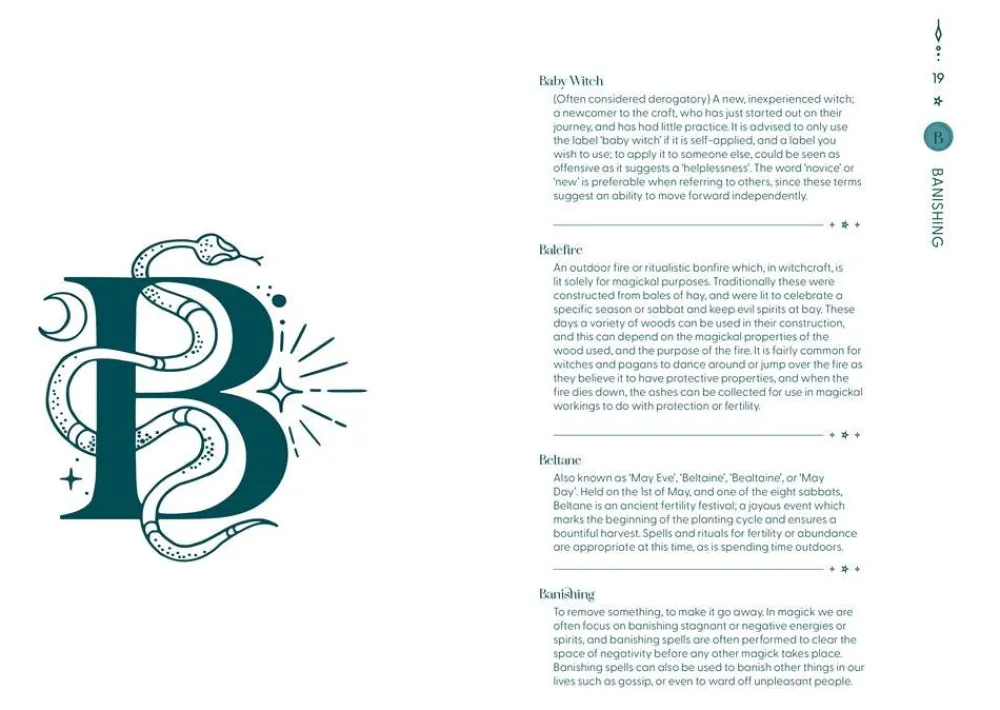 There is a wealth of jargon in the witchcraft community – from words related to sabbats, like Beltane and Samhain, to ingredients, rituals, and a myriad of tools. The Witch-ionary gathers all those terms in one easy to refer to place and gives newbie and beginner witches the guide they need to accompany them on their witchcraft journey.