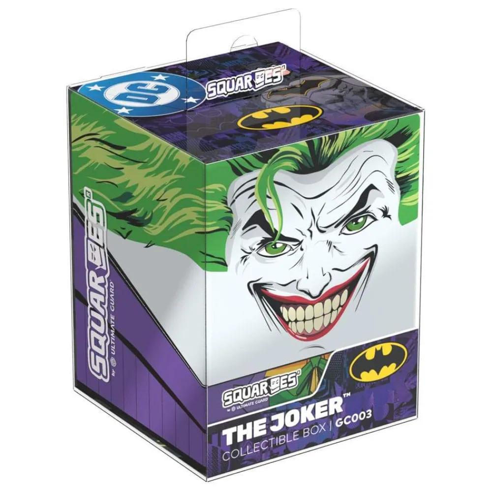 Collectible box for storing TCG decks, tabletop gaming accessories, and/or collectibles. The Joker Squaroe from the Batman: Gotham City edition holds up to 100 cards in double protective sleeves if used as a deck box. Squaroes are made from 78% renewable resources and fit perfectly into the separately available Collectors Case.