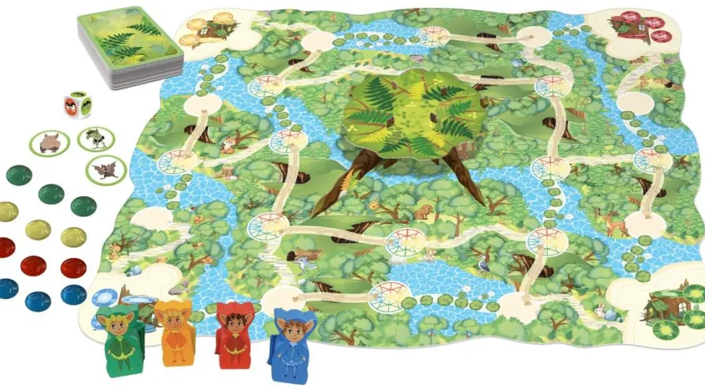 Den magiske skogen trenger deg! De rampete trollene har rotet i krystallene som beskytter den magiske skogen. Du og de andre spillene må få dem dit de hører hjemme. Vær forsiktig – trollene vil prøve å hindre deg, så velg ruten din med omhu. Spilleren som redder all sine fire krystaller først, vinner spillet! – Det er morsomt å ha et eventyr på det store spillbrettet. – Inkluderer bedårende spillkarakterer i tre med tøysekker! – Passende for hele familien.