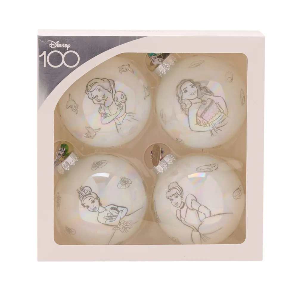 A set of 4 Princess baubles from Disney 100 by DISNEY®.