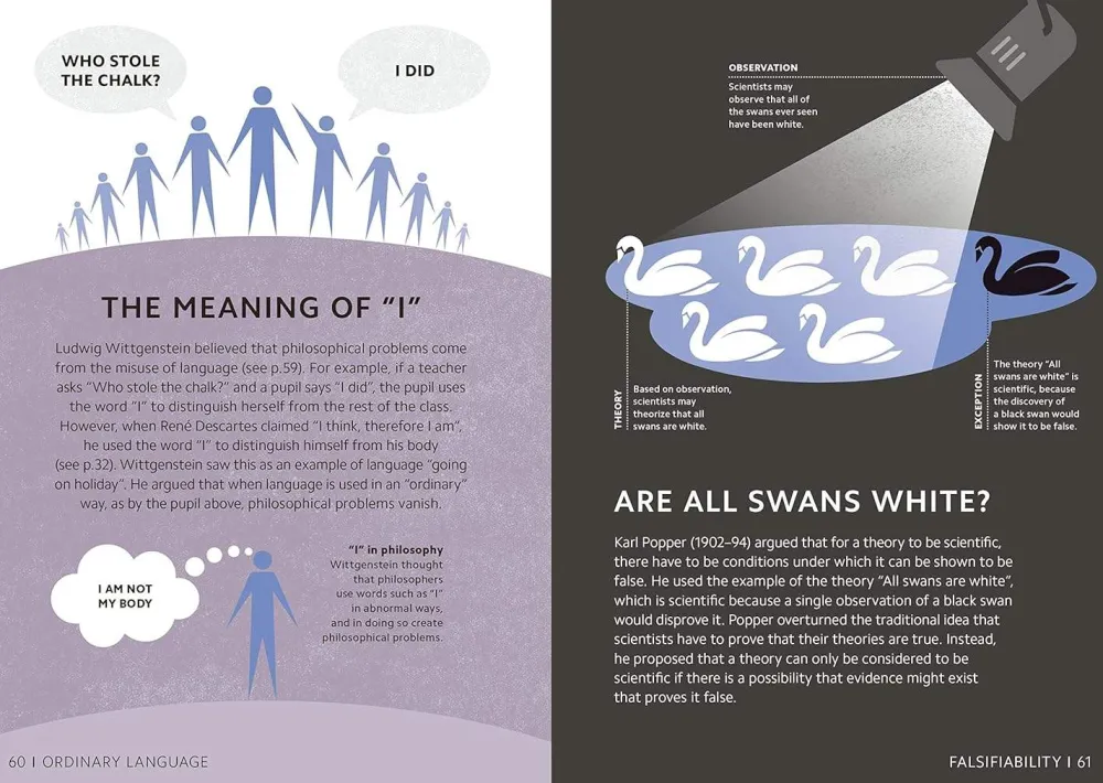 This smart but powerful guide cuts through the jargon and gives you the facts in a clear, visual way. Unlock the mysteries of more than 90 key philosophical ideas, from «I think, therefore I am» and Jean-Paul Sartre’s existential angst to Nietzsche’s Übermensch and Plato’s ideal forms.