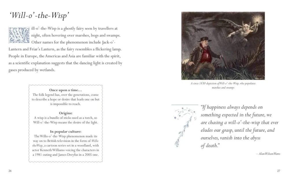 For centuries we have been fascinated with fairies, mythical beings often possessing intriguing magical powers to curse, trick or heal humans. The label of ‘fairy’ has at times applied only to specific magical creatures with human appearance, magical powers, and a penchant for trickery. At other times it has been used to describe any magical creature, such as goblins and gnomes. In Fairies, discover the charming story behind our best loved magical characters, including the Fairy Godmother, Shakespeare’s Titania and the beloved Tinker Bell. Myths and stories about fairies do not have a single origin, but are rather a collection of folk beliefs from disparate sources. Various folk theories about the origins of fairies include casting them as either demoted angels or demons in a Christian tradition, as deities in Pagan belief systems, as spirits of the dead, as prehistoric precursors to humans, or as spirits of nature. Fairies is a pocketful of delight, packed with beautiful images and full of fascinating tales.