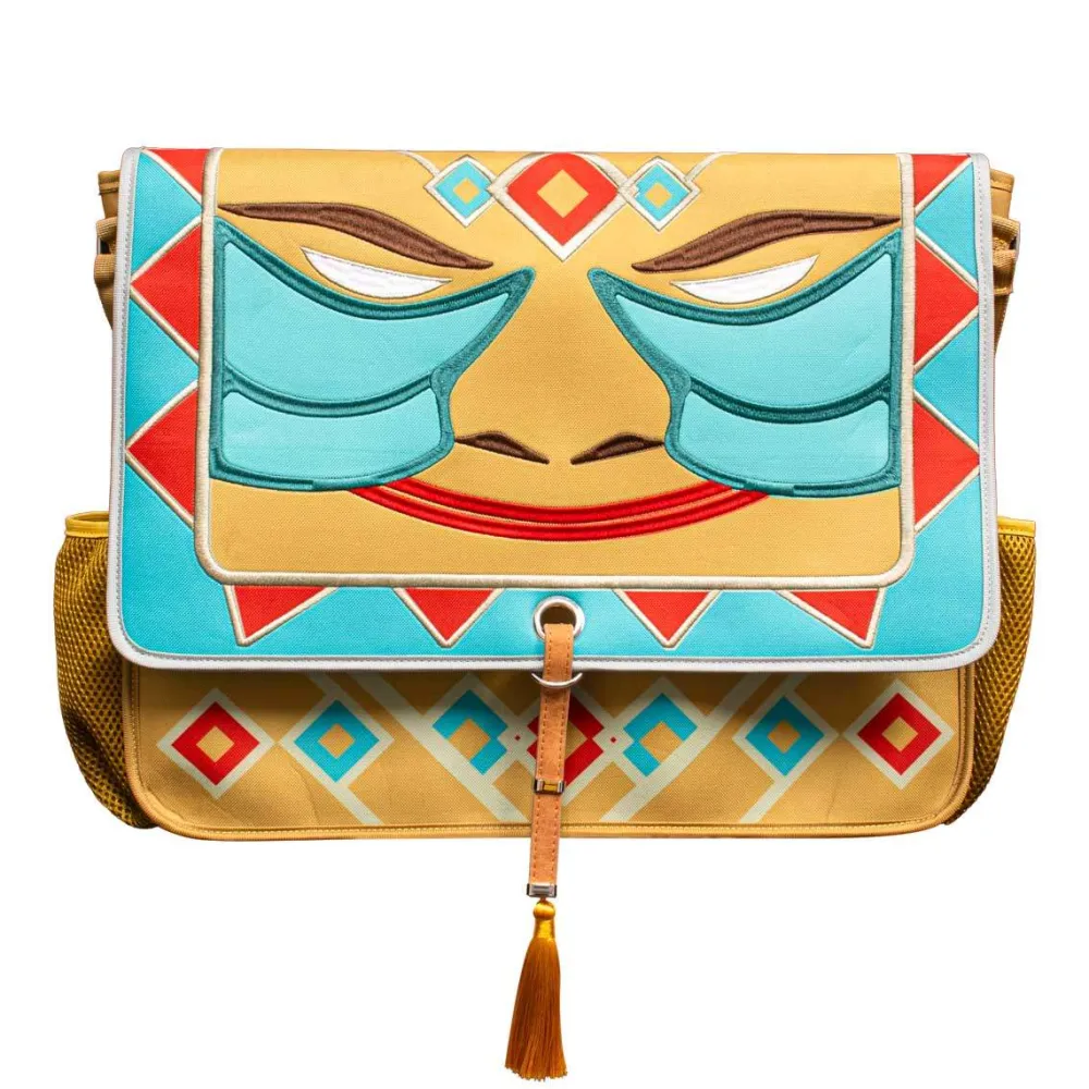 - Embroidered accents and tassel