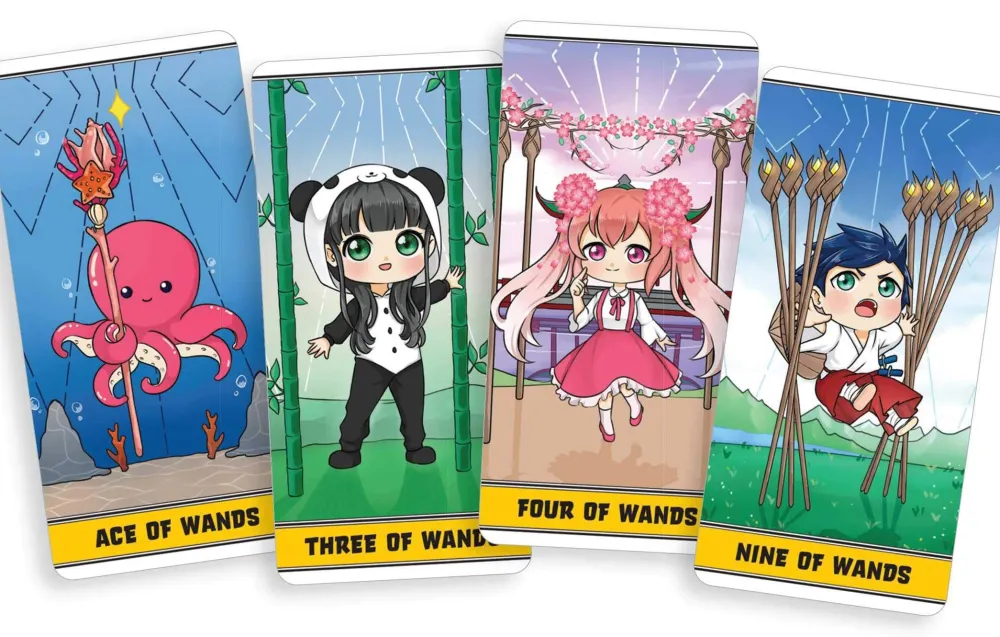 Inspired by the classic Rider-Waite illustrations, these vibrant, beautifully designed cards and consult your step-by-by step guidebook will reveal a delightful tarot reading that’s as cute as it is divine. Whether you’re a beginner to tarot readings or a collector of fun decks like Cat Tarot and Kawaii Tarot, Chibi Tarot is here to make divination an entertaining experience for everyone!