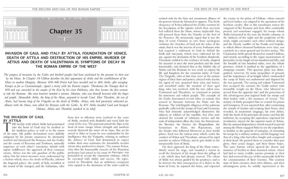 Edward Gibbon’s masterpiece of historical writing, The Decline and Fall of the Roman Empire, is presented here in a stunning large-format gift edition with printed page edges and classic illustrations by Giovanni Battista Piranesi.