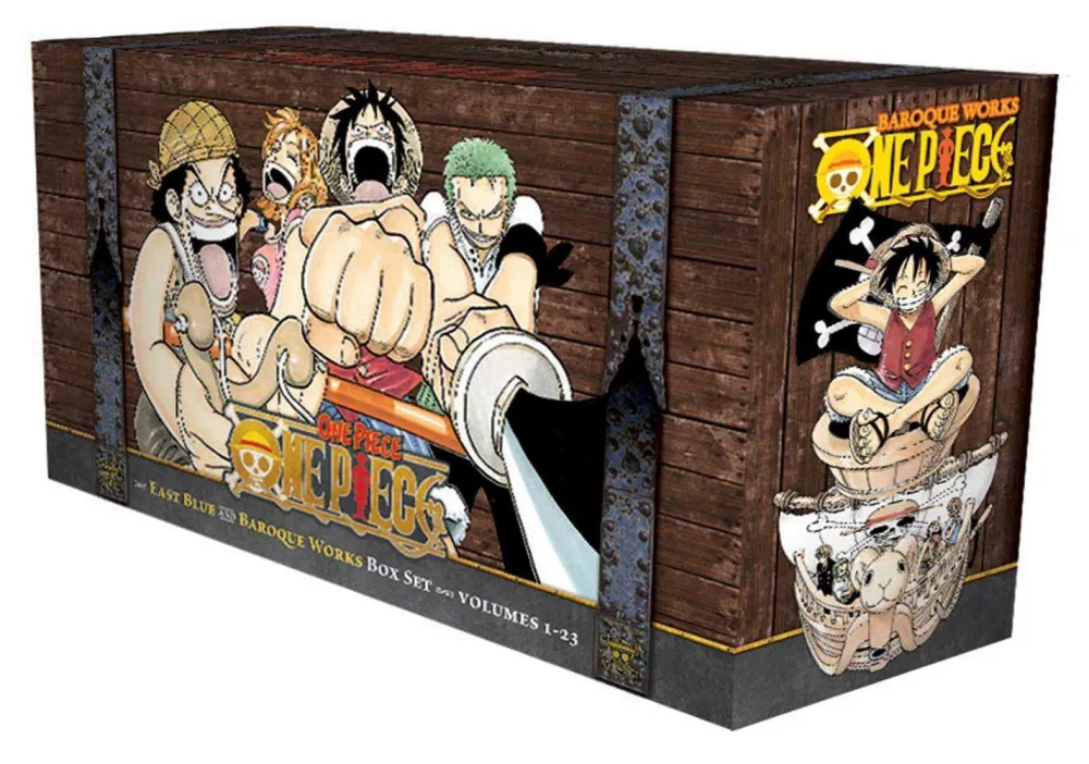 This box set includes volumes 1-23, which comprise the first two story arcs, East Blue and Baroque Works. With exclusive premiums and great savings over buying the individual volumes, this set is a pirate’s treasure for any manga fan!