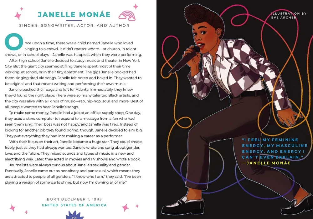Find your voice with Janelle Monae. Play for equality with Billie Jean King. Protect your community with Marcia P. Johnson and Sylvia Rivera. And organize joyful celebrations with Dr. Lady Phyll and Molly Pinta.