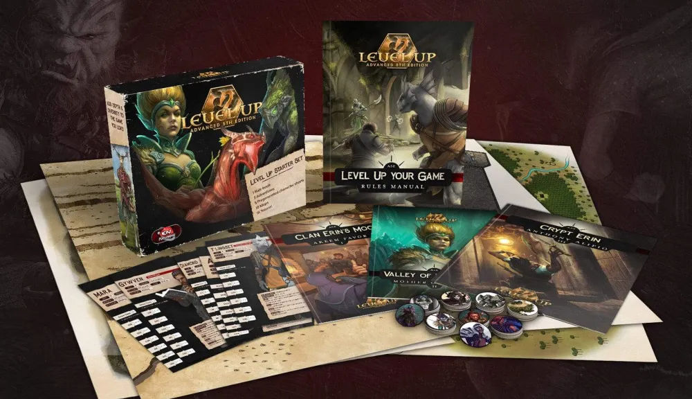 - A 66-page rulebook which ‘upgrades’ your game from 5E to Level Up: Advanced 5E. Including new conditions, combat maneuvers, and a selection of monsters demonstrating how Level Up brings foes to life.