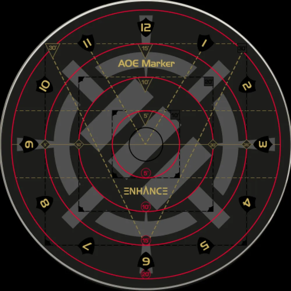 ENHANCE TABLETOP AOE Damage Marker is a practical tool for RPG gamers. Its purpose is to quickly and accurately determine the Area of Effect (AoE) of a spell, ability, or event that takes place during an RPG session. Features a straight line indicator with distance markers (up to 40ft) which allows the AoE marker to be used to determine distances for gamers who do not use a battle map. Markers and labels are clearly indicated and easy to read.