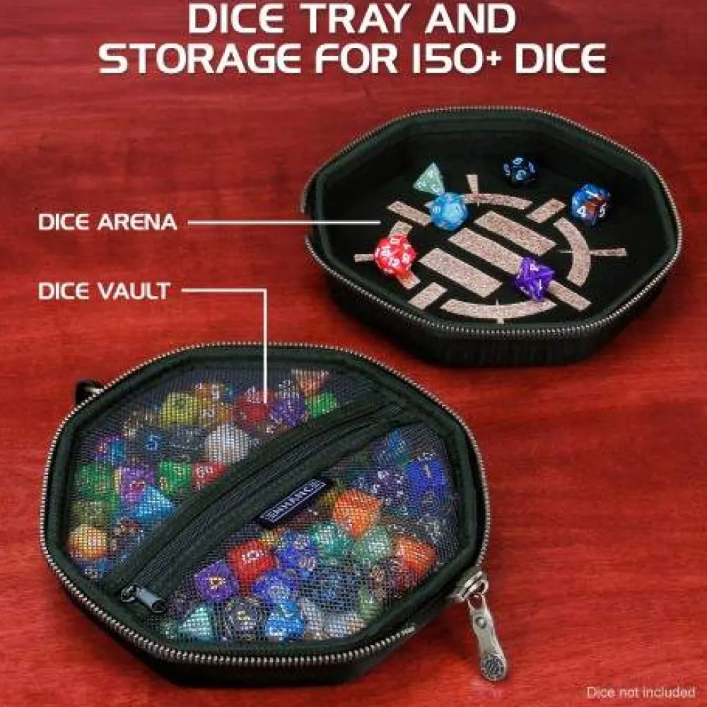 Equipped with heavy duty zippers, scratch-resistant lining, and a large soft-lined dice rolling tray with large wall. The ENHANCE Dice Storage Case is the perfect addition to your collection of RPG travel accessories. It is actually two products in one, with one half safely storing up to 150 dice and the other functioning as a large dice tray that can be passed around the gaming table. A hard shell reinforced case protects your dice from wear and tear, while the soft lined interior keeps all your dice free from blemishes and unsightly scratches. It also features a metal attachment clip for attaching to backpacks and bags. Our Dice Travel Case is great for Dungeons and Dragons, board games, and various other tabletop RPG games. Replace your small dnd dice bags and bulky dice trays with the ENHANCE Dice Case, a solution for all RPG players.