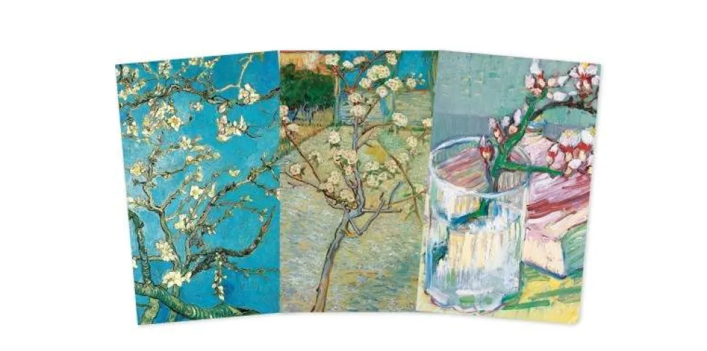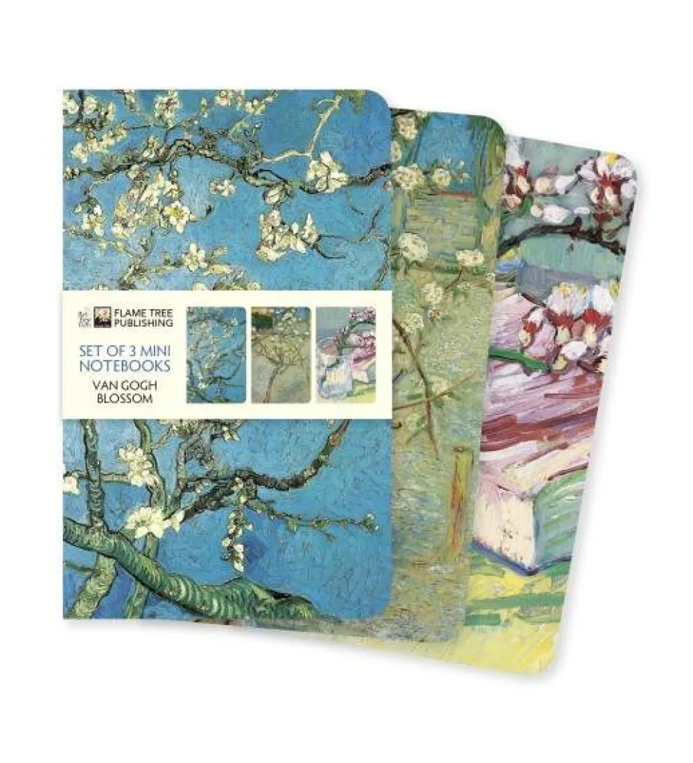 The Vincent van Gogh: Blooms Set of 3 Mini Notebooks features a collection of three mini, foiled notebooks with alternating lined and blank pages. Each notebook has a different beautiful design: Almond Blossom, Small Pear Tree in Blossom and Flowering Almond Branch. With a sturdy cover and rounded corners, they are perfect to be carried everywhere!