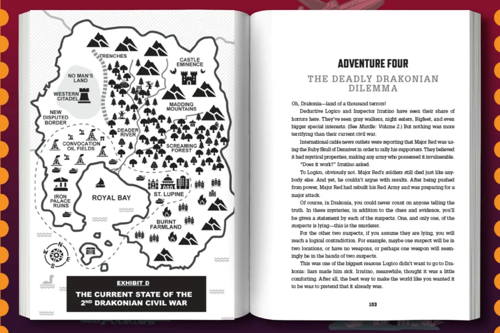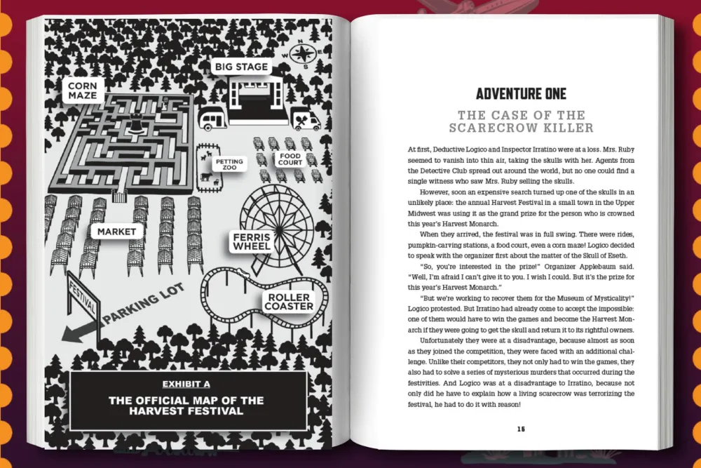 Deductive Logico is back on the case to solve even more maddening murders. The Museum of Mysticality’s prized possession, the seven legendary bejeweled skulls, have gone missing just days before the museum’s grand opening. In desperation, the curator enlists Logico’s unparalleled detective skills to unearth the missing artifacts scattered all over the world. But how is Logico supposed to solve this mystery when a murder seems to occur with every turn of the page?