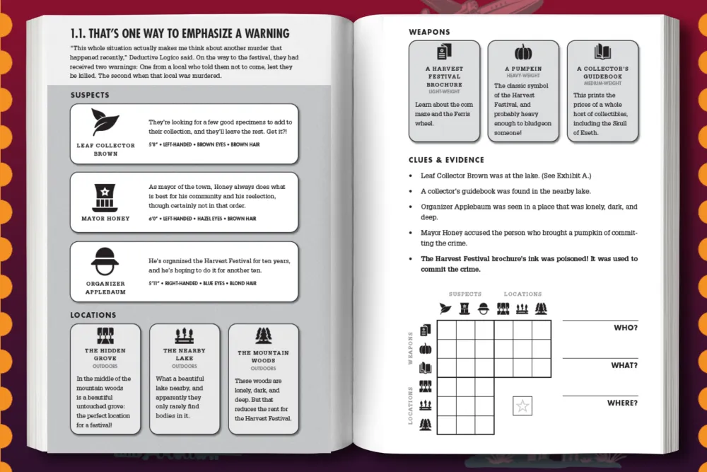 Each puzzle tasks Logico—and you!—to crack a murder case with a list of suspects, weapons, locations, and clues. Using deductive reasoning to complete a simple logic grid, you’ll determine each killer by process of elimination. Will you discover the rational explanations behind each of these seemingly supernatural stories? Or will you have to admit that some mysteries cannot be explained?