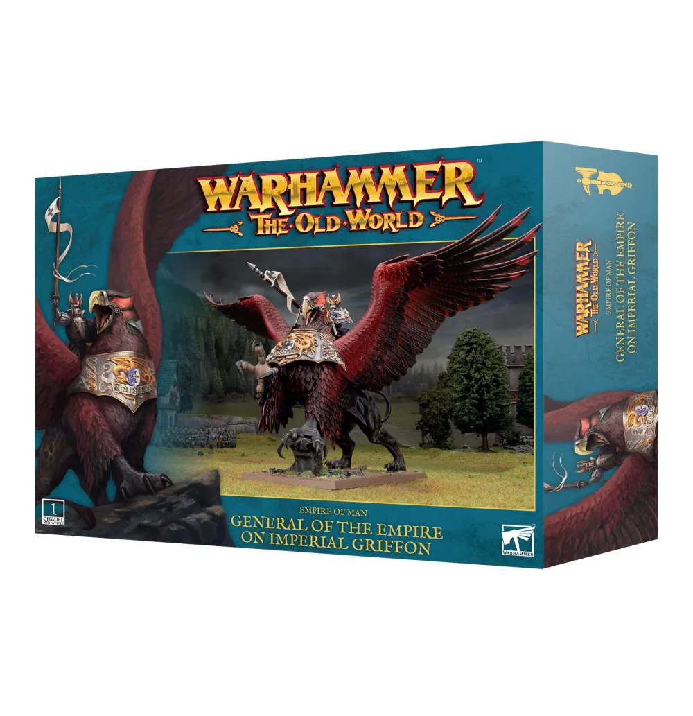 This multipart plastic kit builds a General of the Empire on Imperial Griffon for use in Empire of Man armies in games of Warhammer: The Old World.