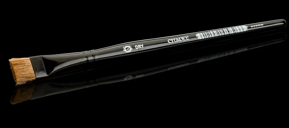 Denne store børsten (L Dry) har en blanding av oksehår og syntetisk til bust for stivhet og holdbarhet. Den flate profilen betyr en jevn dekning på hevede områder – ideell for tørrbørsting!