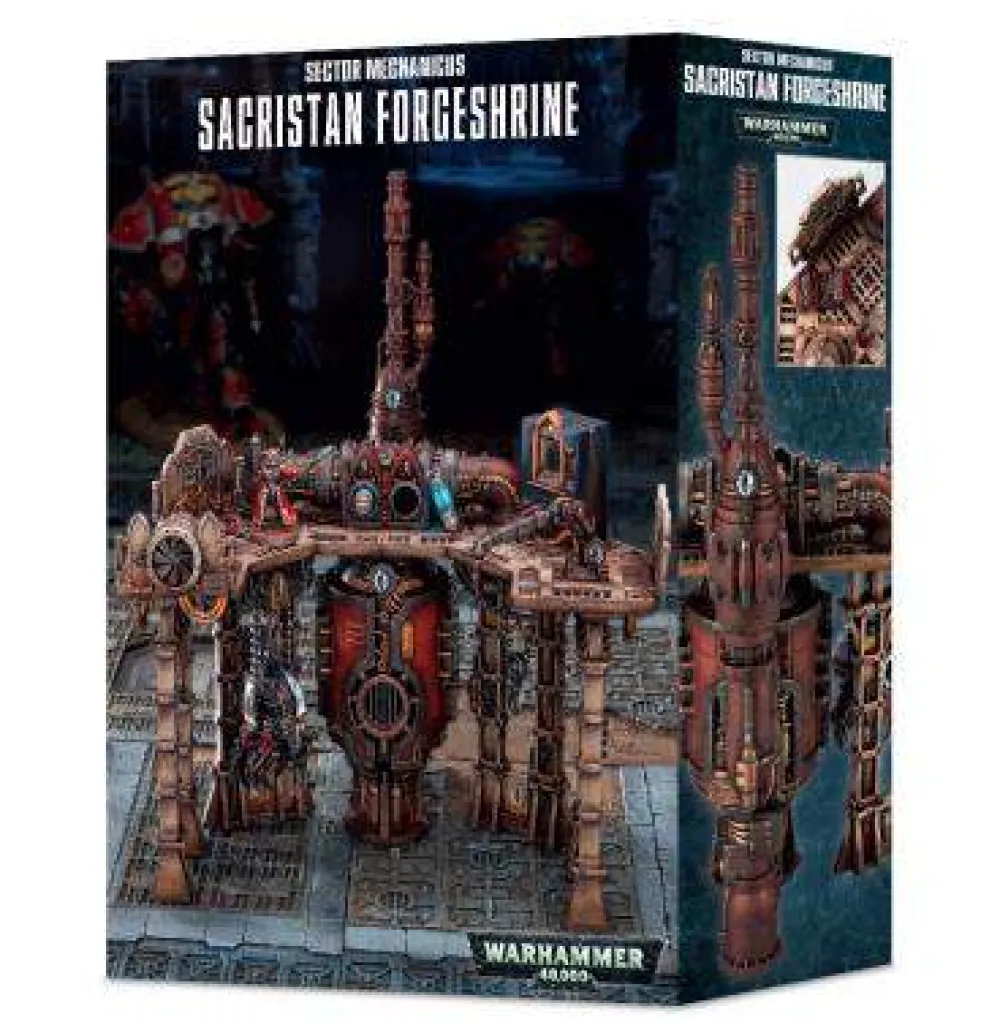– A Sacristan Forgeshrine frame, including a control point with space for 2 fusion batteries, which can be placed in the control point and removed at will, an operating console featuring keyboard and screen, 2 pipes, a welder arm, a toolbox and fire extinguisher;