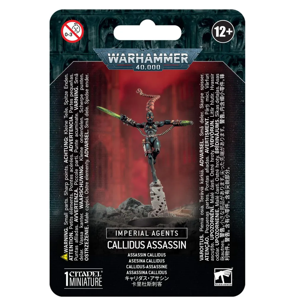 This multipart plastic kit builds a Callidus Assassin, a shapeshifting Imperial Agent deployed to undermine and eliminate enemies of the Imperium.