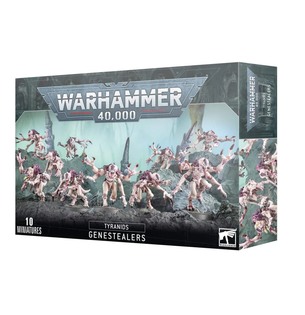 Genestealers are peerless predators, swift vanguard organisms armoured in chitinous plates and possessed of terrifying strength and agility. Their broods move far ahead of the Tyranid hive fleets, to seek out fresh feeding grounds and spread their insidious genetic infection amongst the defenders. When the invasion swarms finally descend, the Genestealers burst from hiding to begin the slaughter.
