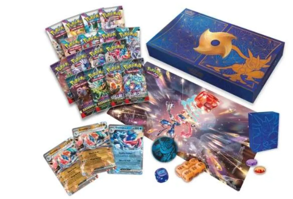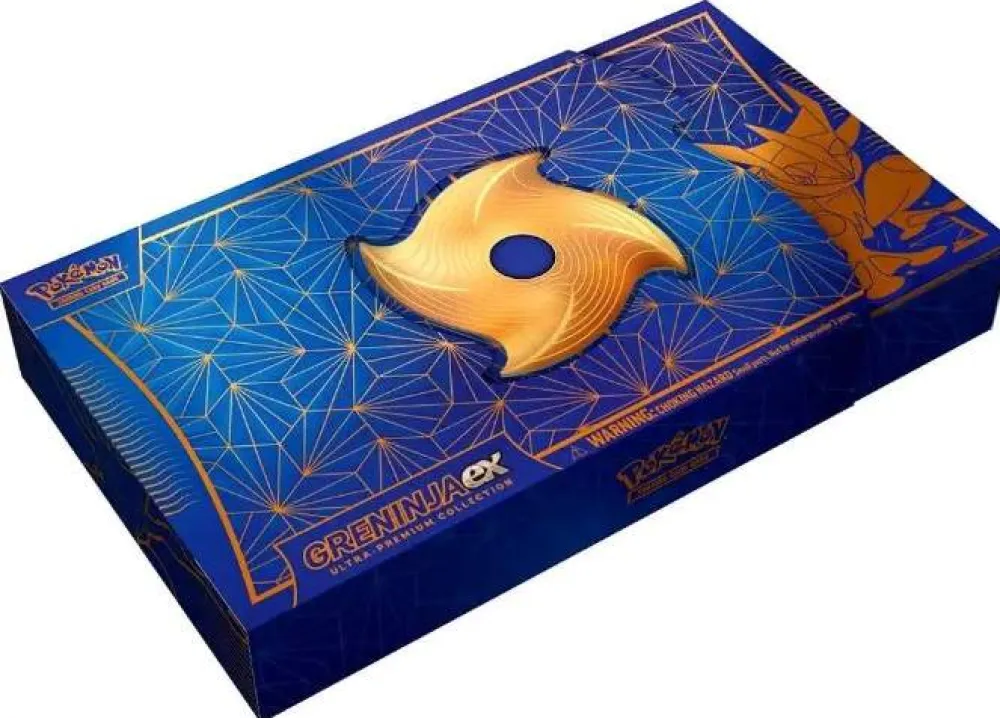 Greninja EX fights its way to the top! Hopping back into the Pokémon TCG action its the ninja Pokémon Greninja! This wondrous Pokémon, usually a Water type, stars in its own Ultra-Premium Collection as a Fighting-type Tera Pokémon EX. Use Shinobi Blade to hit hard and search your deck for any card, or attack with Mirage Barrage and hit the opponents bench twice! Fitting for such an iconic Pokémon, this collection includes Greninja EX as both a playable card and a collectible metal card, a full-art promo card featuring Greninja EX, a wealth of Pokémon TCG booster packs, a deck box and playmat, and much more.