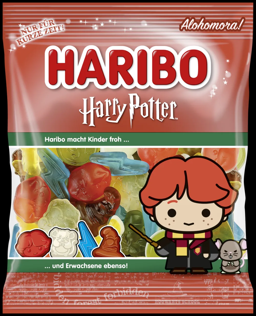 Magisk morsomt og godt gelegodteri fra Haribo. Denne limited edition utgaven inneholder gelé og skum godteri formet som ikoniske ting fra Harry Potter universet.